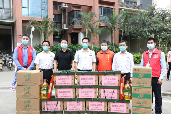 據悉,慰問品由廣東燦城農產品集團有限公司配送,包括大米、油等生活必需品。