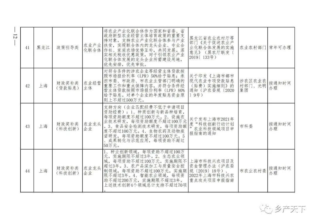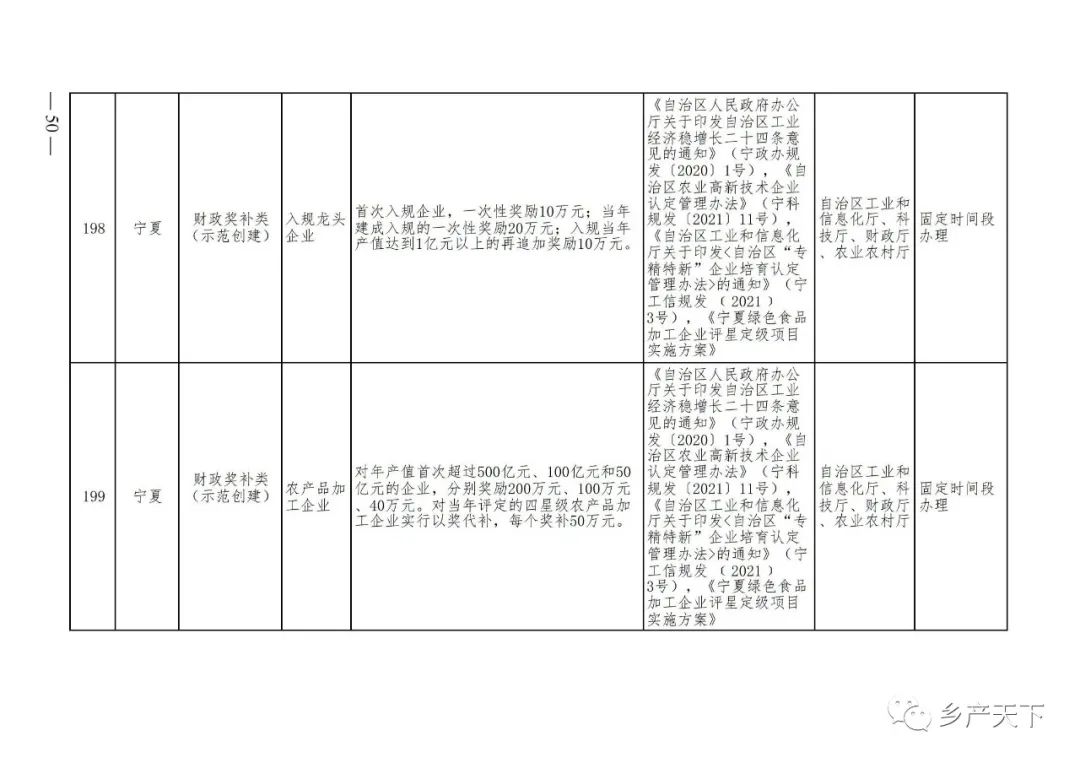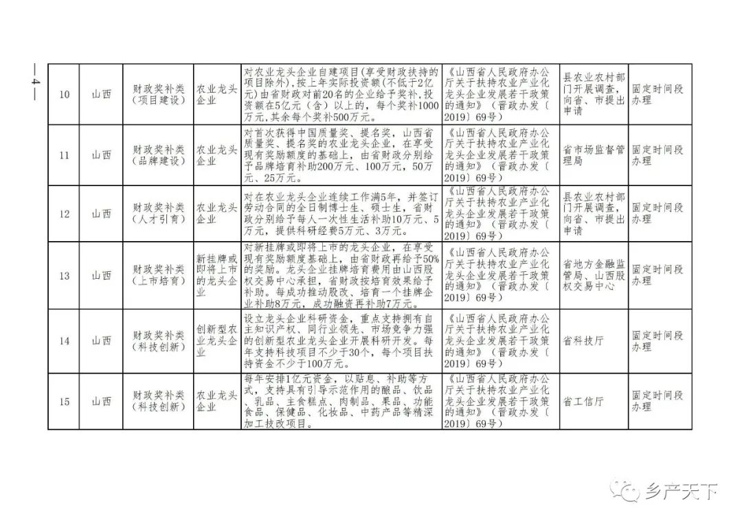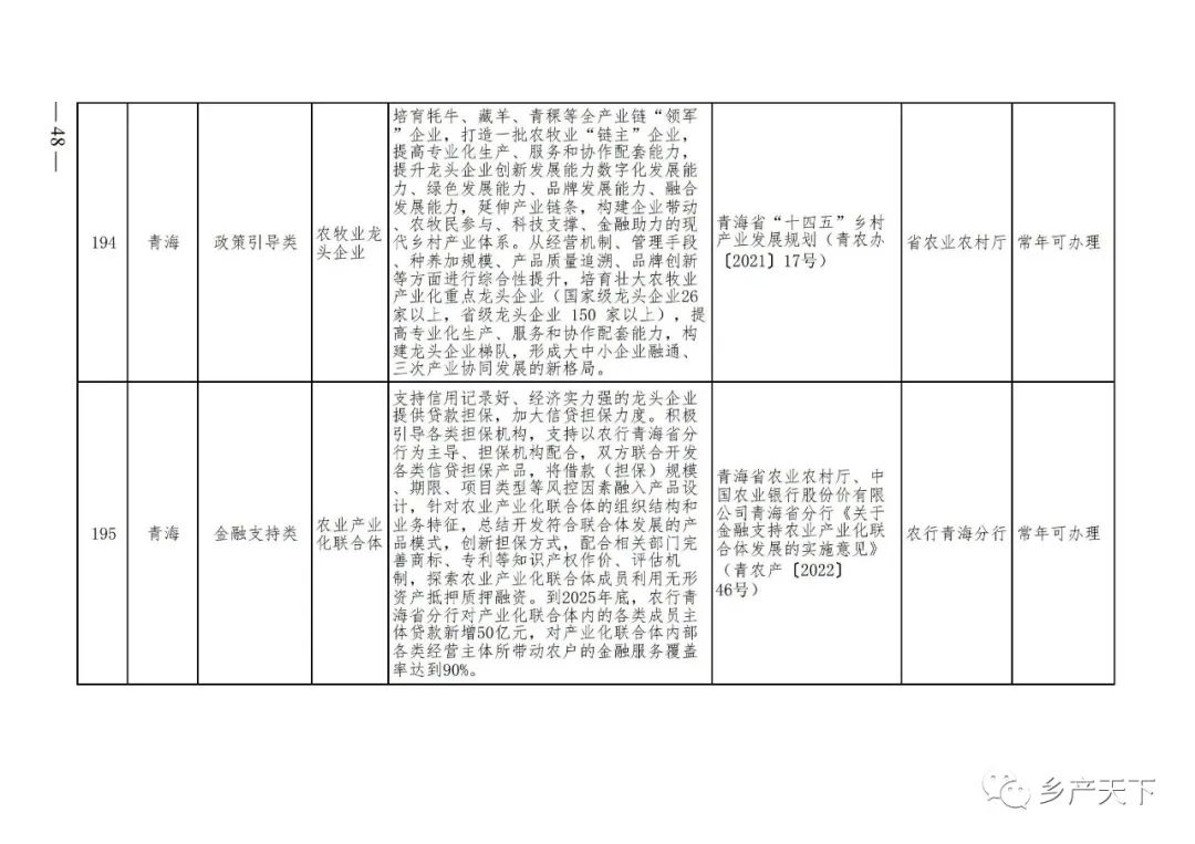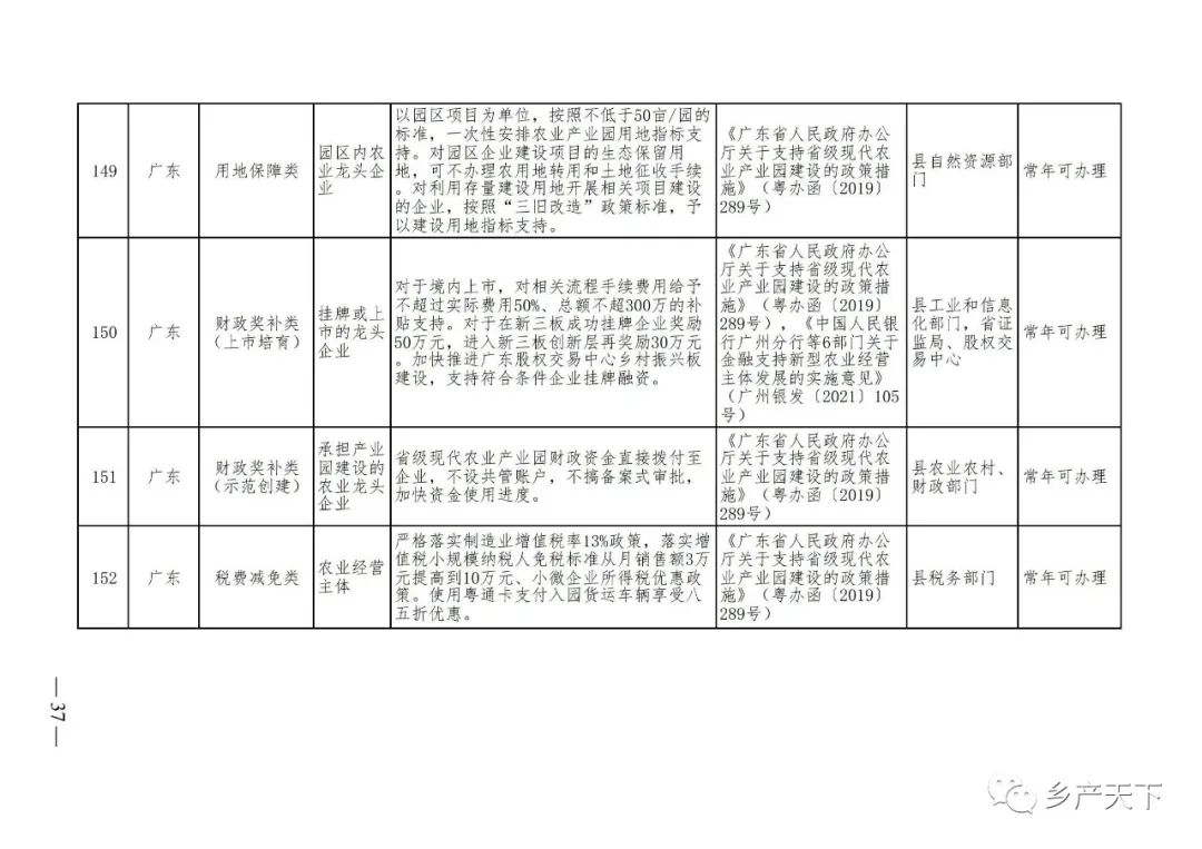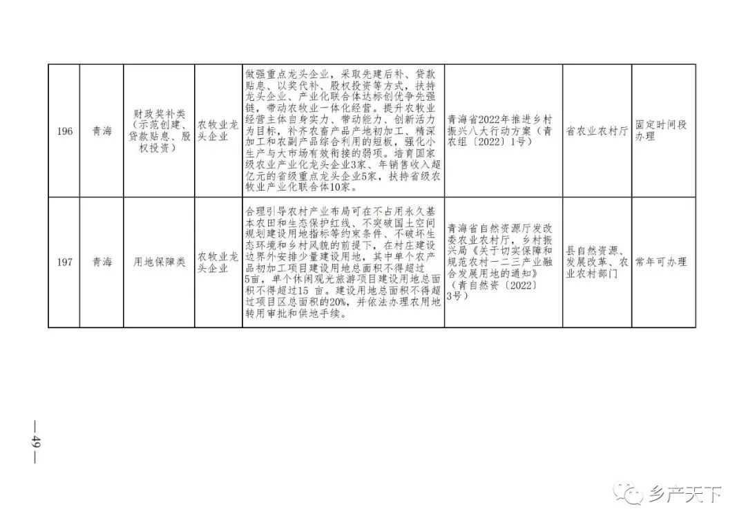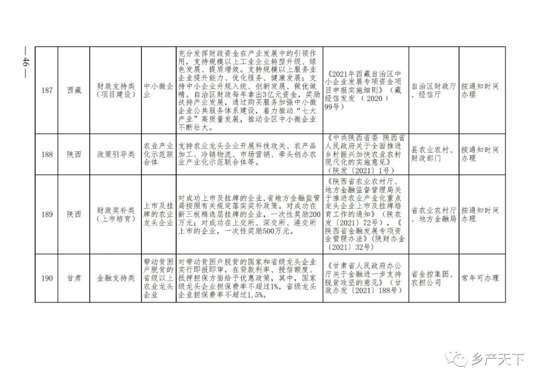 農業產業化龍頭企業支持政策清單