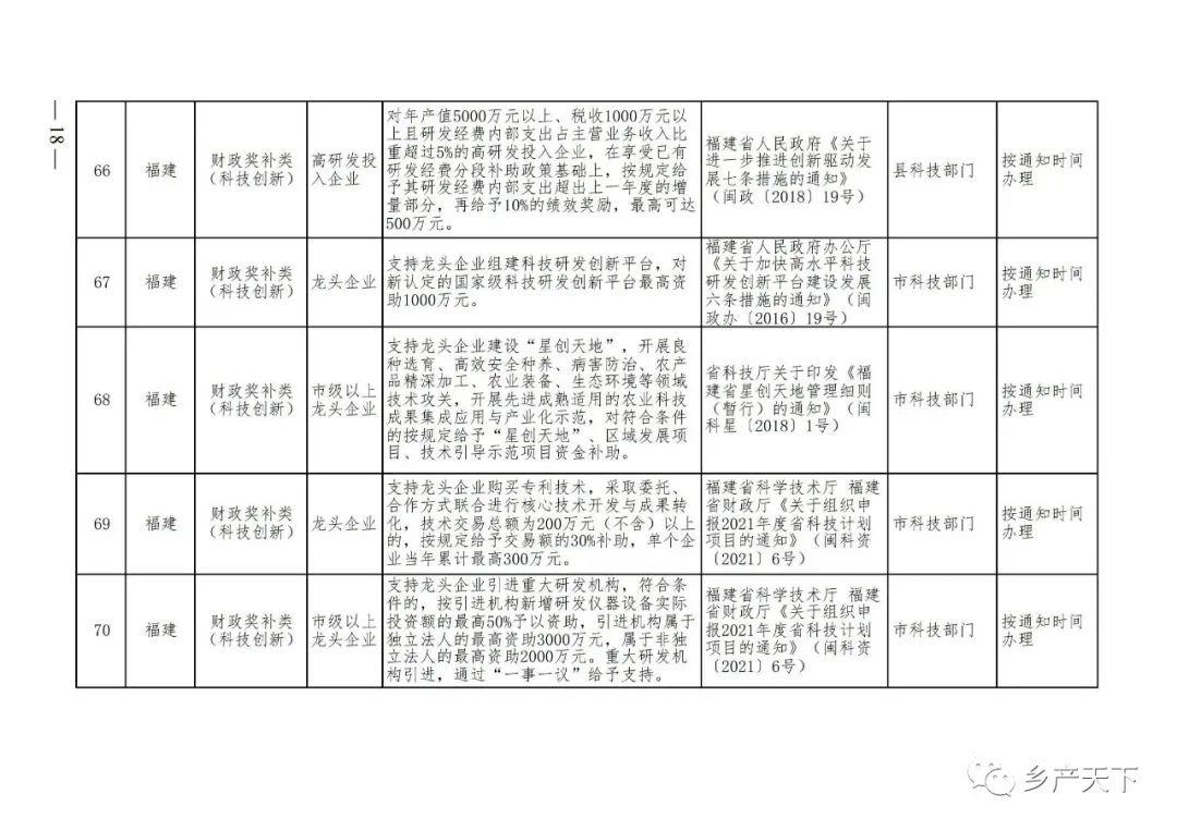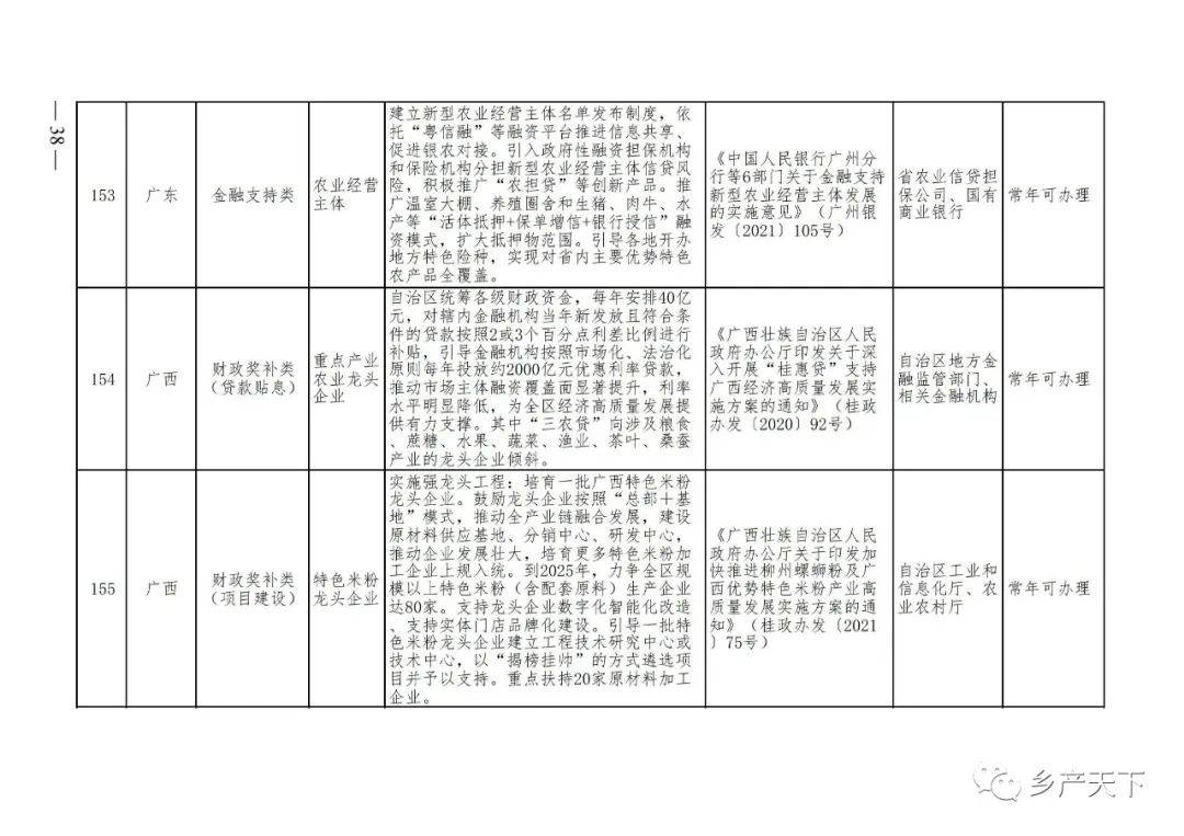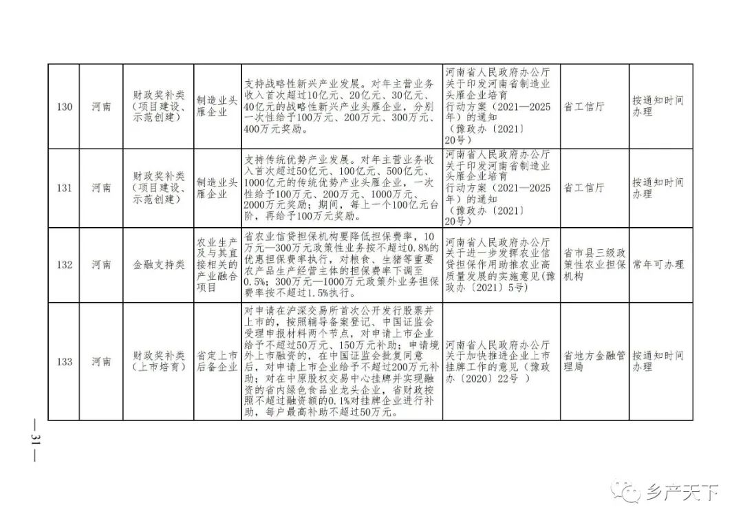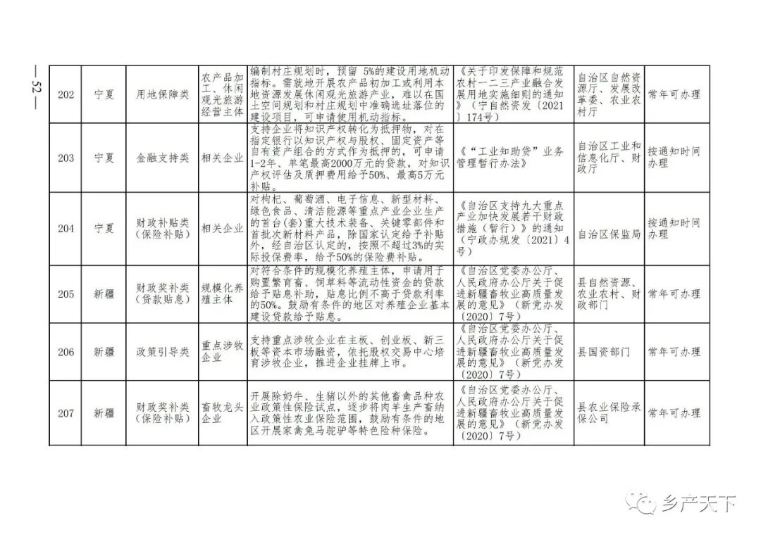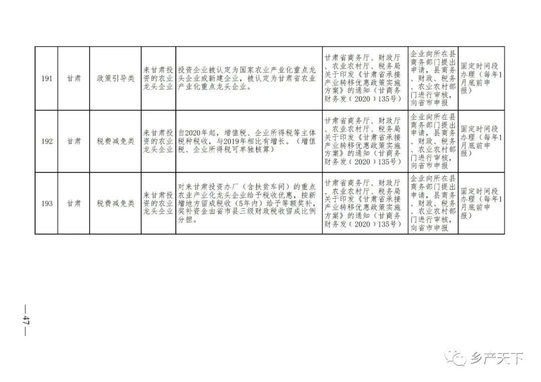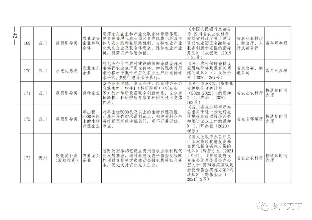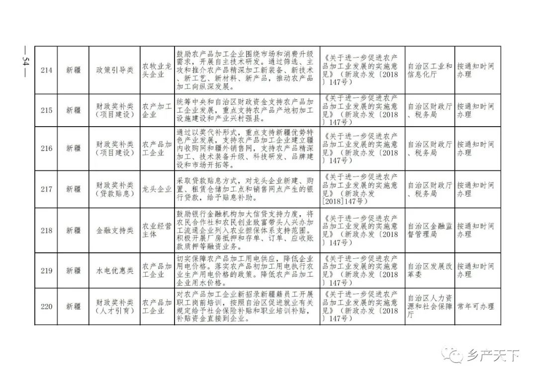 農業產業化龍頭企業支持政策清單
